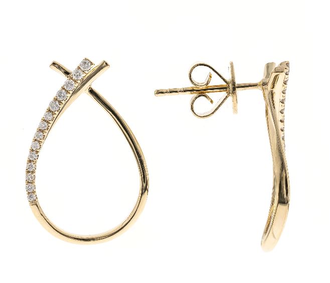 Color Merchants Inc- 14K Yellow Gold Diamond Clover Twist Hoop Earrings