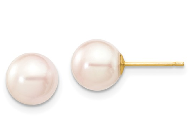 14Y 7-8mm Rd White Saltwater Akoya Cultured Pearl Stud Earrings