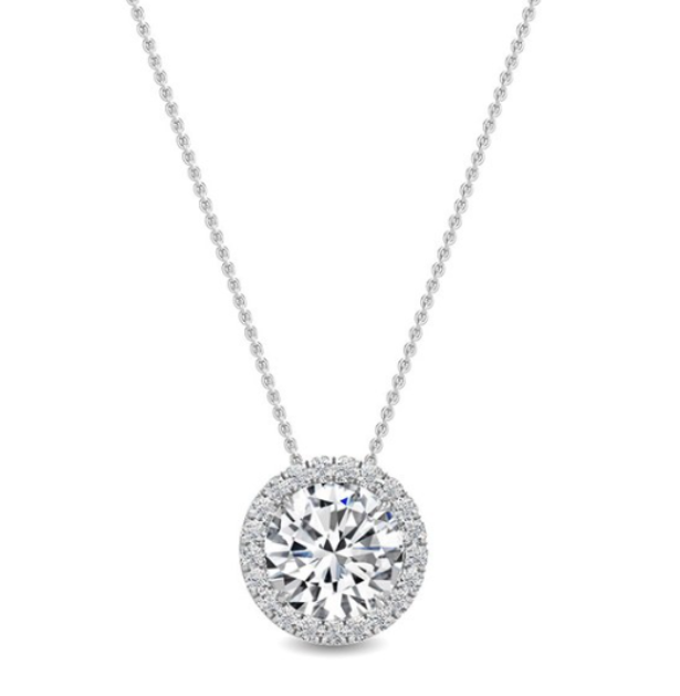 14W .65ct Lab Grown Round Diamond Halo Pendant and Chain