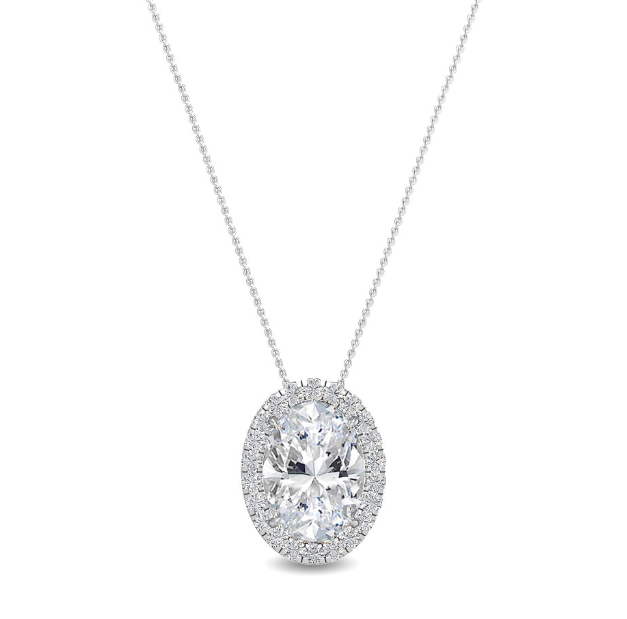 14W .70ct Oval Lab Grown Diamond Halo Pendant and Chain .79ctw