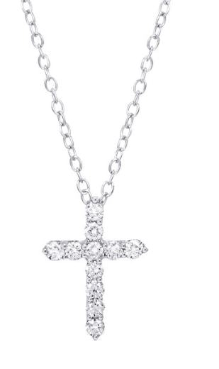 14W Round Diamond Cross Pendant on 18" Cable with Lobster Clasp