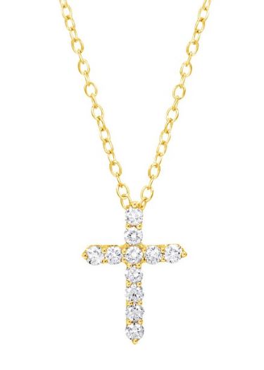14Y Round Diamond Cross Pendant on 18" Cable with Lobster Clasp