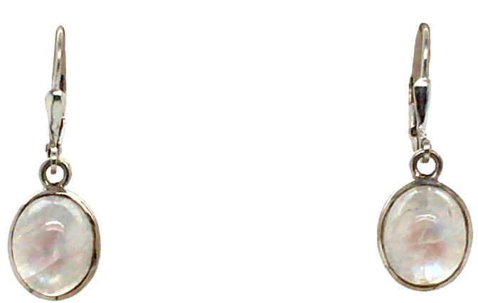 Sterling Silver Moonstone Bezel Set Oval Dangle Earrings with Leverbacks