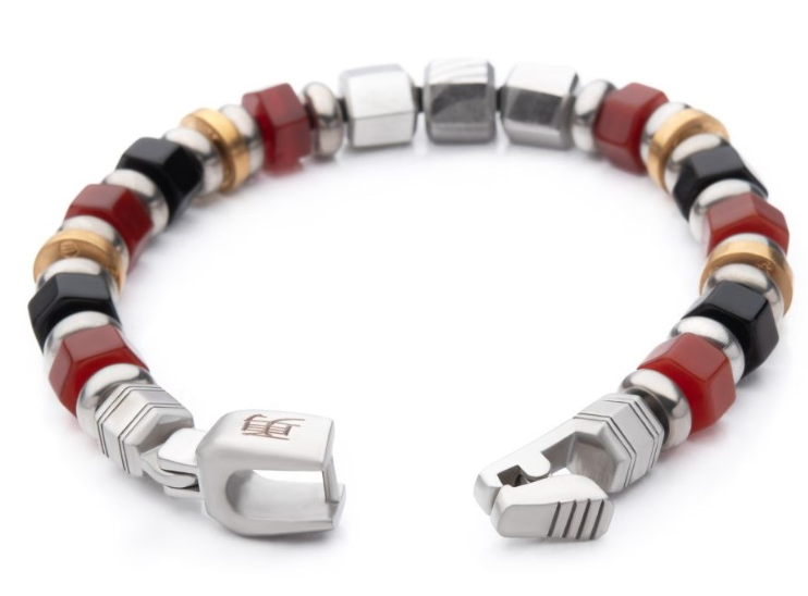 Stainless Steel Mokume Gane & Red Jasper Bead Bracelet 8.25'' REI: Respect