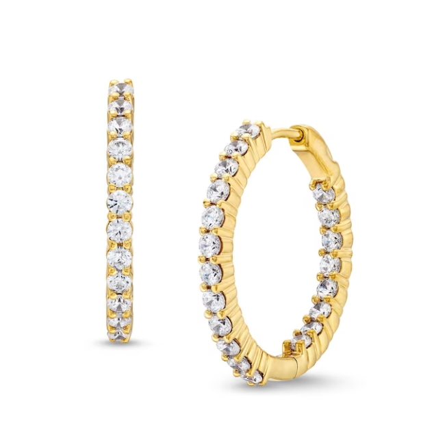 18W Oval .75" In/Out Diamond Hoop Earrings