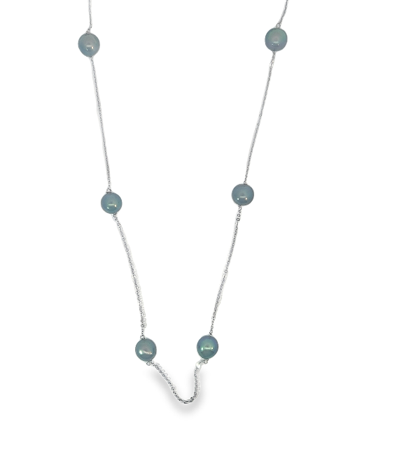 14Y 1.1mm Open Link Chain with 10 6mm Station Pearls Necklace