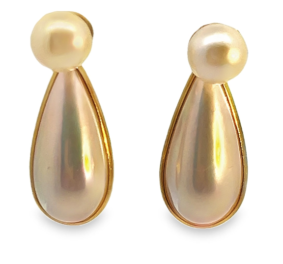 14Y Round and Pear Shaped Mabe Pearl Drop Earrings