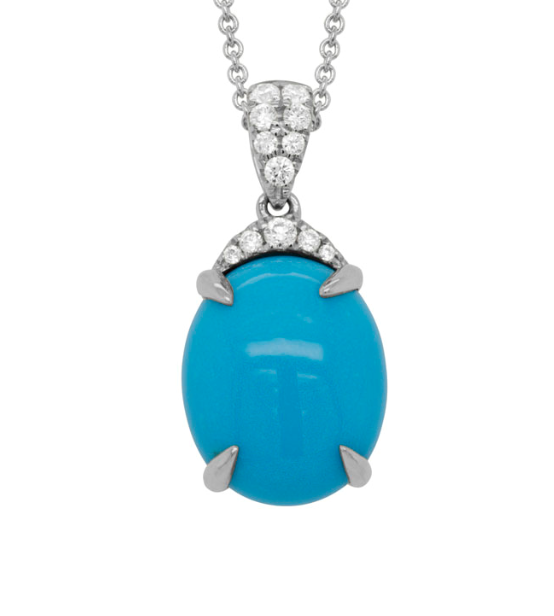 14W Oval Turquoise Pendant with Diamond Bail and Diamond Accent Chain