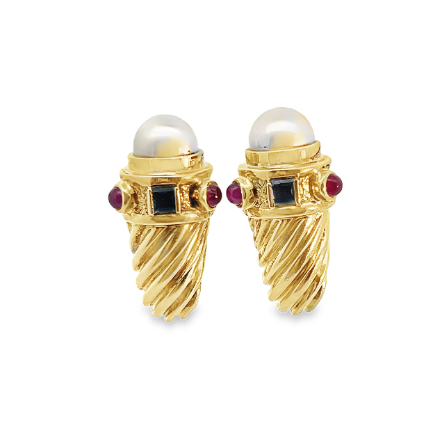 18Y David Yurman Pearl and Ruby Earrings with Omega Backs