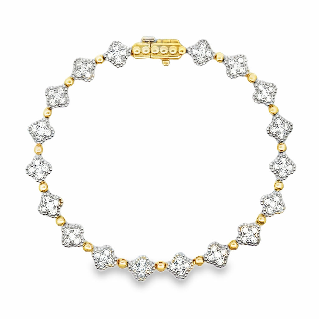 14W Clover Diamond Cluster Station Bracelet with Yellow Gold Bead Sections 7"