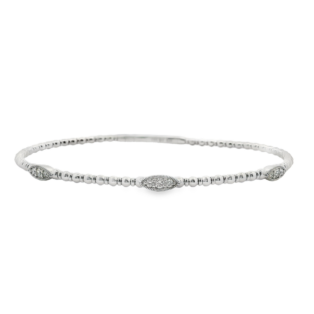 14W 3-Station 3 Round Diamond Miligrain Marquise Bead Flexi Bangle Bracelet .20ctw I/SI1