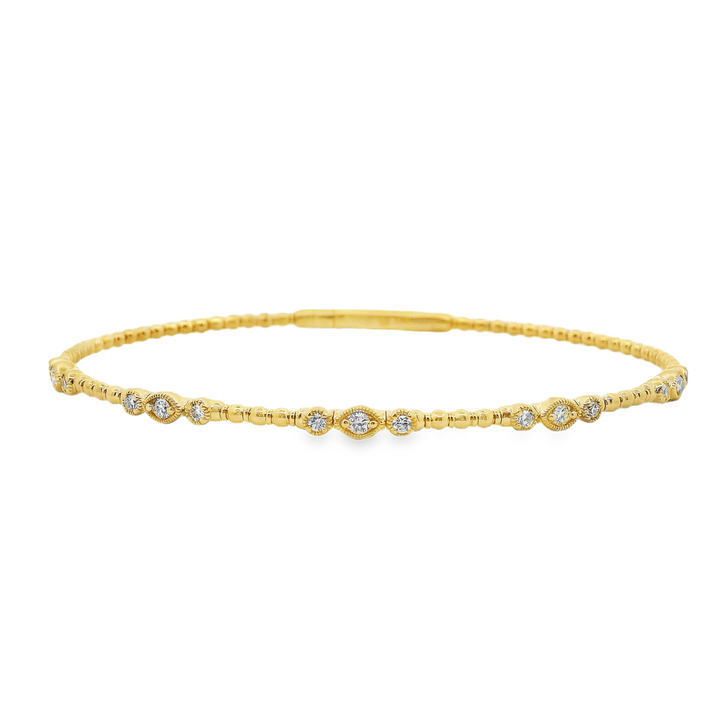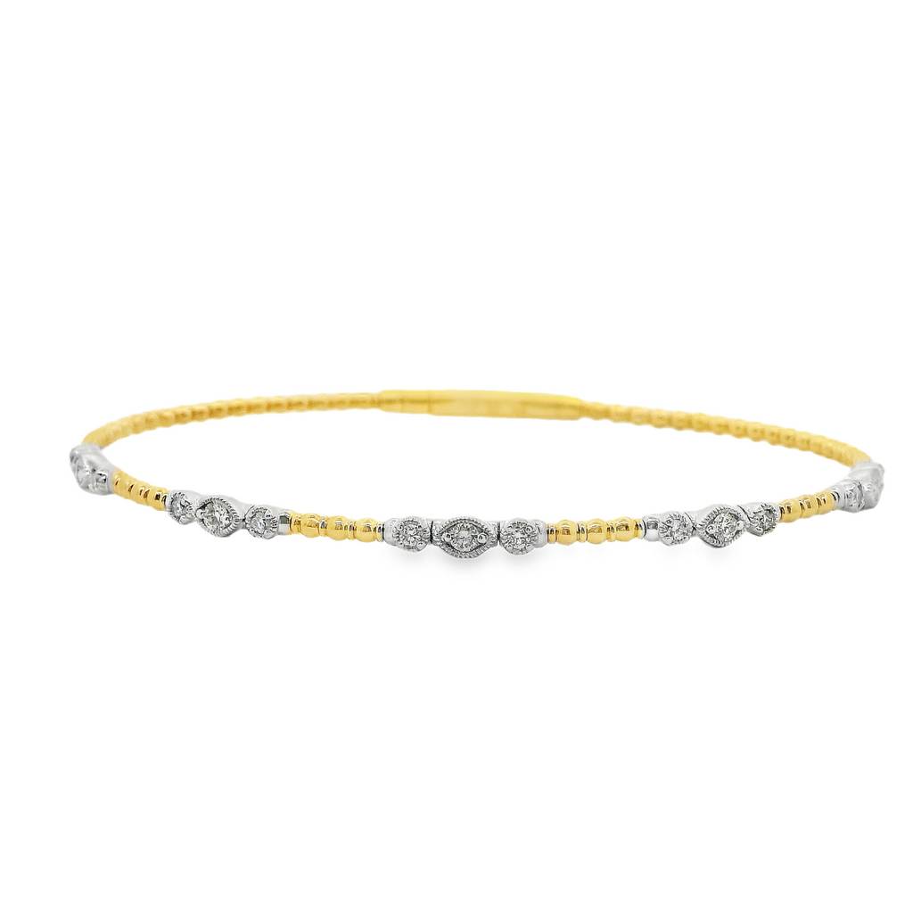 14Y 5-Station Rd Diamond Miligrain Station Bead Flexi Bangle Bracelet .33ctw I/SI1