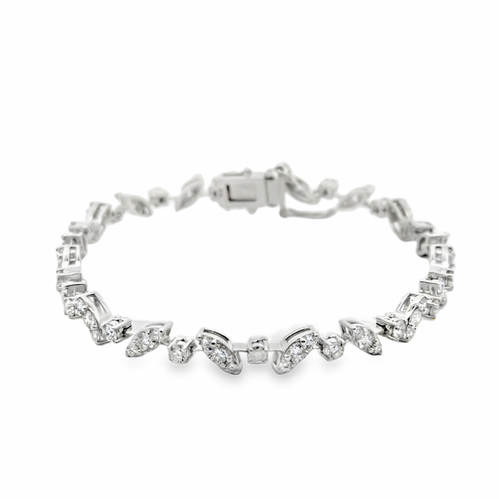 14W Round and Marquise Illusion Link Round Diamond Bracelet 3.31ctw