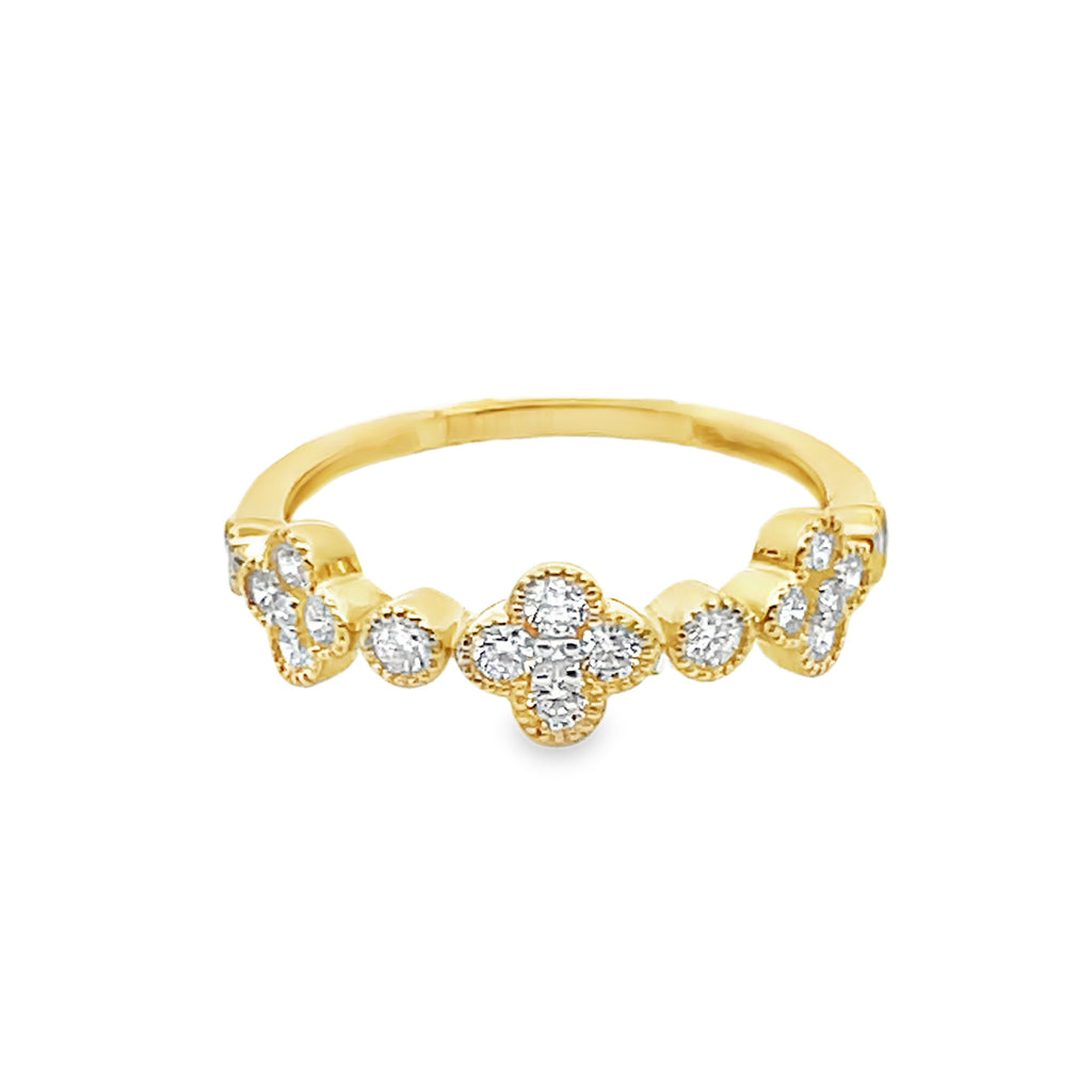 14Y Van Cleef Style Diamond Station Ring with 4-Round Miligrain Bezel Diamonds sz 6