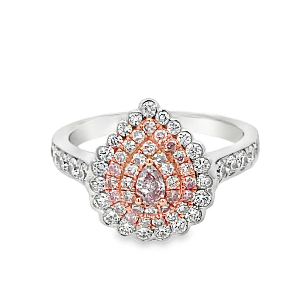 18W/R Round and Pear Shape Pink Diamond Ring with Round White Diamond Halo 1.08ctw sz 7