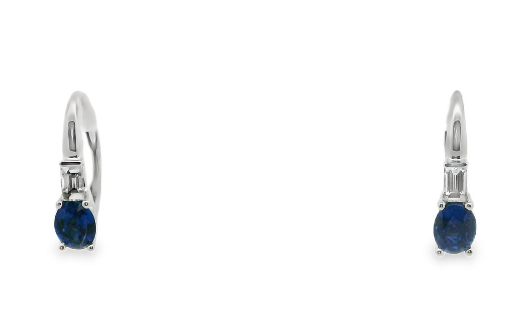 14W Oval Sapphire with Straight Baguette Lever Back Earrings 1.22ctw