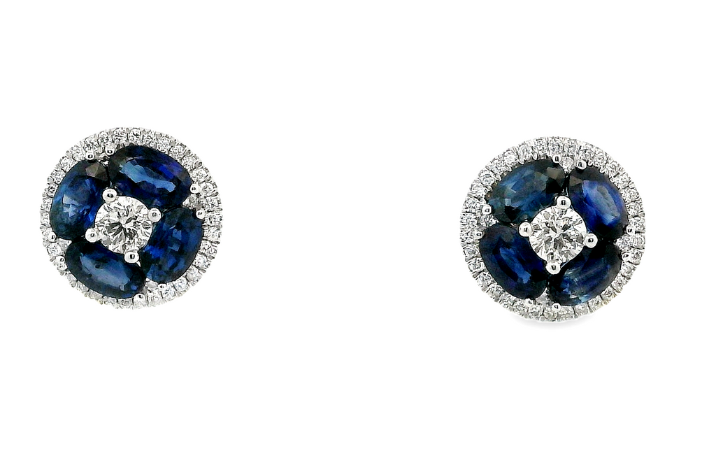 14W Round Sapphire and Diamond Halo Stud Earrings