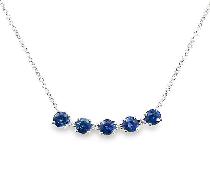 14W Diamond 5-Stone Blue Sapphire Necklace