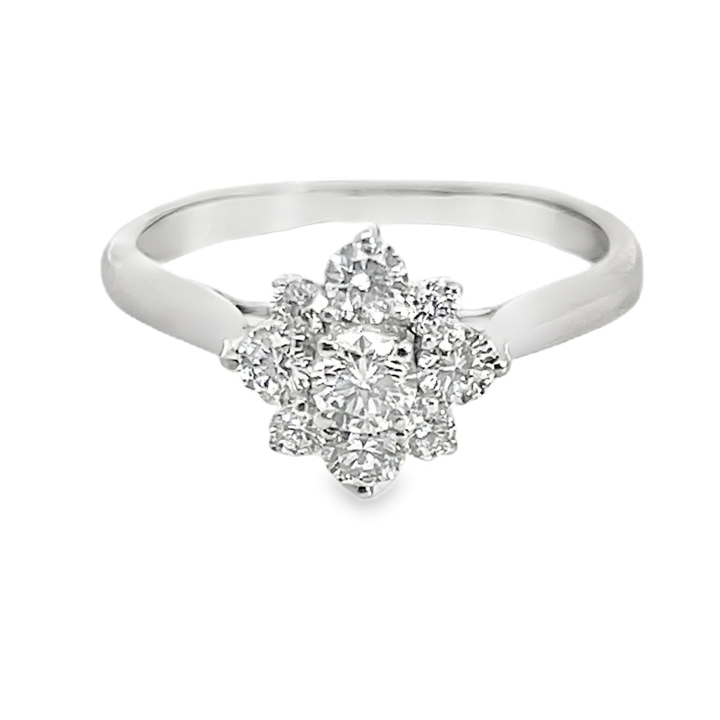 14W .75ctw 9 Stone Flower Shaped Lab Grown Diamond Ring sz 7