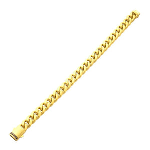 895-245 Stainless Steel 18YGP 10mm Matte Finish Cuban Bracelet with Black Sapphires