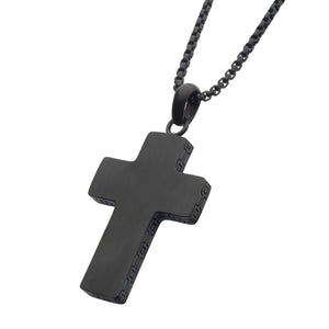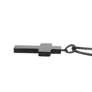 892-165 Stainless Steel Black Engravable Cross Pendant with Round Box Chain